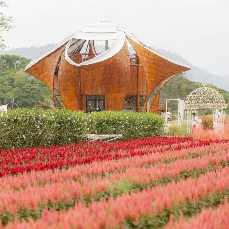 Bliss & Bloom Cafe คาเฟ่ดอกไม้ปราจีนบุรี ตั้งอยู่ภายในรีสอร์ต The Verona at Tub Lan แลนด์มาร์คแห่งนี้เต็มไปด้วยความสวยงามของทุ่งดอกไม้ มีทั้งดอกเวอร์บีน่าสีม่วง ดอกคอสมอสสีชมพูสดใส และดอกไม้อื่นๆที่หมุนเวียนกันไปตลอดปี เหมาะกับการมาถ่ายรูปทำคอนเท้นต์ลงไอจีเป็นที่สุด สำหรับไฮไลท์ของคาเฟ่แห่งนี้คือ ดีไซน์ของตัวคาเฟ่ที่เป็นรูปทรงกลีบดอกเวอร์บีน่า และตกแต่งด้วยไม้ไผ่ ซึ่งเป็นวัสุดุท้องถิ่นได้อย่างสวยงาม สร้างความตื่นตาตื่นใจเป็นอย่างมาก เป็นคาเฟ่ถ่ายรูปสวยปราจีนบุรี ที่น่ามาแวะอย่างมาก