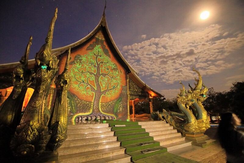 วัดสิรินธรวรรารามภูพร้าว วัดสวยงามจังหวัดอุบลราชธานี หรือที่เรียกว่า วัดเรืองแสง เป็นวัดที่ตั้งบนเนินเขา ที่ได้จำลองสภาพแวดล้อมของวัดป่าหิมพานต์ วัดสิรินธรวรารามภูพร้าว โดดเด่นด้วย พระอุโบสถสีปัดทอง และภาพเรืองแสงเป็นสีเขียวของต้นกัลปพฤกษ์ ซึ่งเป็นจิตรกรรมที่อยู่บนผนังด้านหน้าของพระอุโบสถในยามค่ำคื่น เป็นสถานที่ถ่ายรูปสวย จังหวัดอุบลราชธานี ที่น่าเวียนมาเที่ยวชมเป็นอย่างมาก ใครสายบุญ สายคอนเท้นต์ พลาดไม่ได้