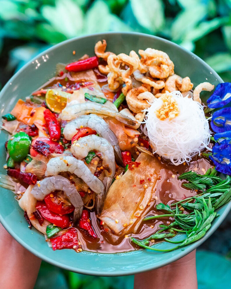 ร้านอาหารนครปฐม Bubble in the forest ร้านอาหารและคาเฟ่บรรยากาศดี นั่งทานอาหารริมบ่อน้ำสีมรกต ซึ่งทางร้านตกแต่งสไตล์ของมัลดีฟส์ มีบ่อน้ำสีมรกตเชื่อมด้วยสะพานไม้ ทั้งยังมีโซนให้ลูกค้าแวะไปเดินเล่นถ่ายรูปสวยๆ เต็มไปหมด เตรียมชุดมาถ่ายรูปได้เลย ในส่วนของเมนูที่นี่มีทั้งอาหาร ของหวาน เครื่องดื่ม ครบจบในที่เดียว อาทิ กุ้งแม่น้ำเผา, ส้มตำปลาร้าทะเลถาด, ปูนิ่มผัดผงกะหรี่, กุ้งทอดซอสมะขาม และที่แนะนำคือเมนูทะเลตกครก เป็นเซ็ตทำขนมครก DIY สนุกแถมยังอร่อยด้วย